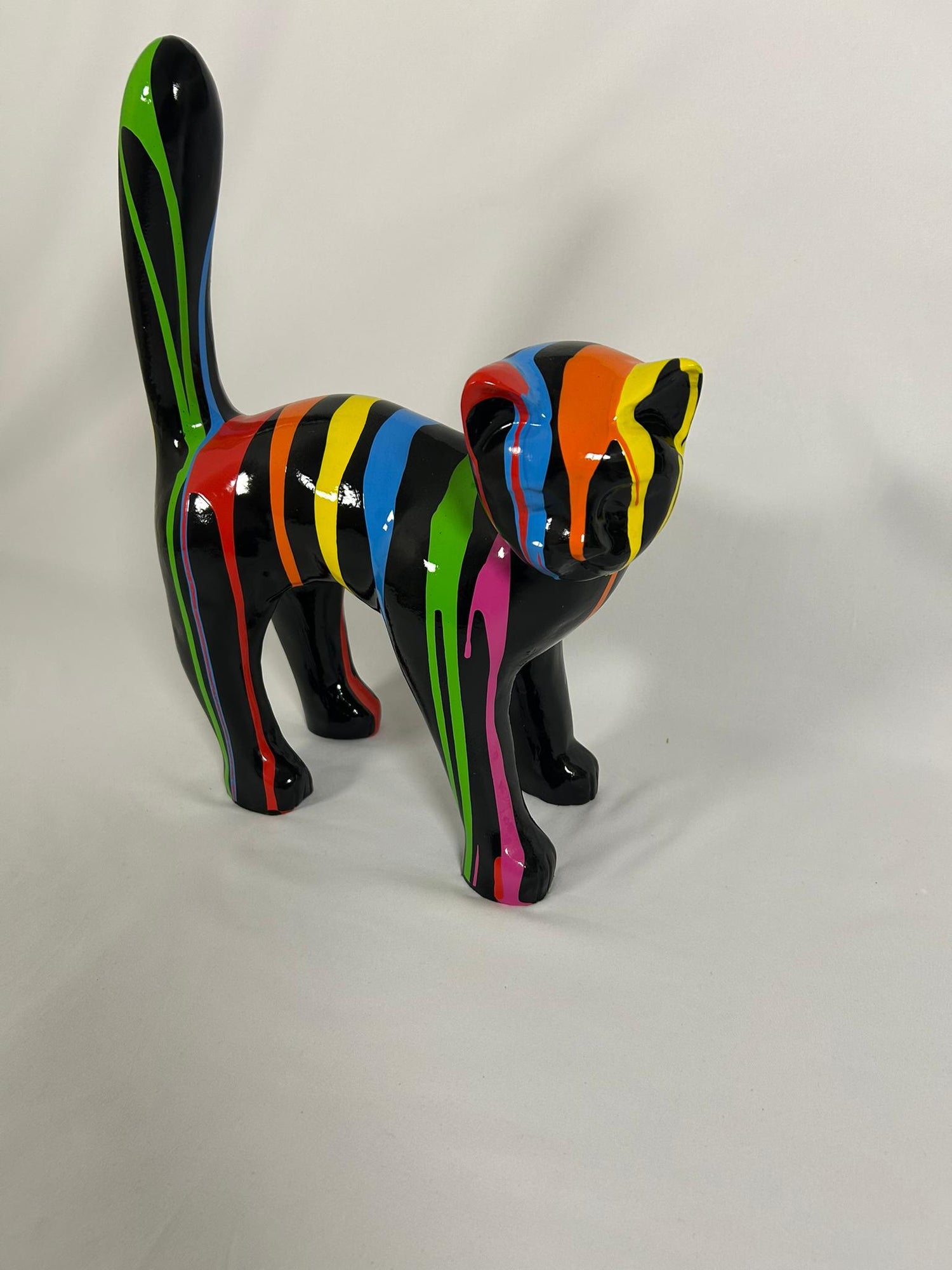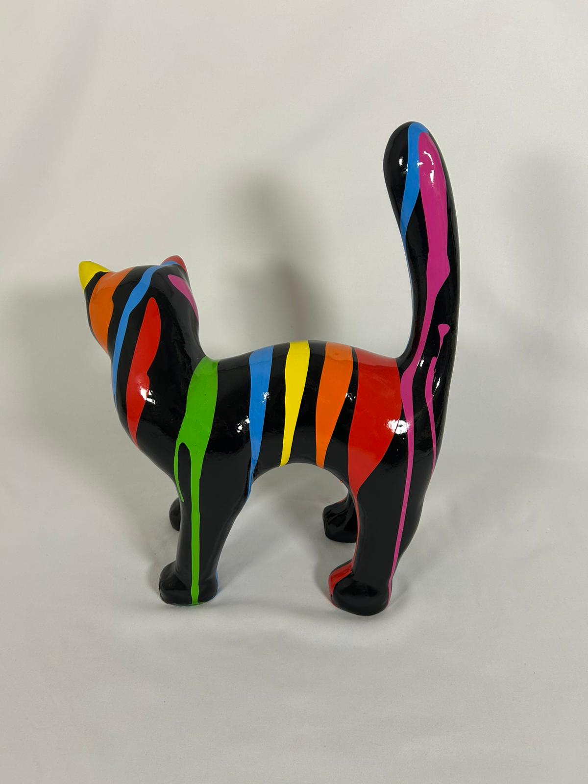 Hauskatze Karla ist ein echtes Statement-Piece. Mit ihrer eleganten Haltung, dem tiefschwarzen Grundton und den ausdrucksstarken, farbigen Akzenten verbindet sie moderne Kunst mit verspielter Leichtigkeit. Ob im Wohnraum, im Wintergarten oder als außergewöhnlicher Blickfang im geschützten Außenbereich – Karla zieht garantiert alle Blicke auf sich.