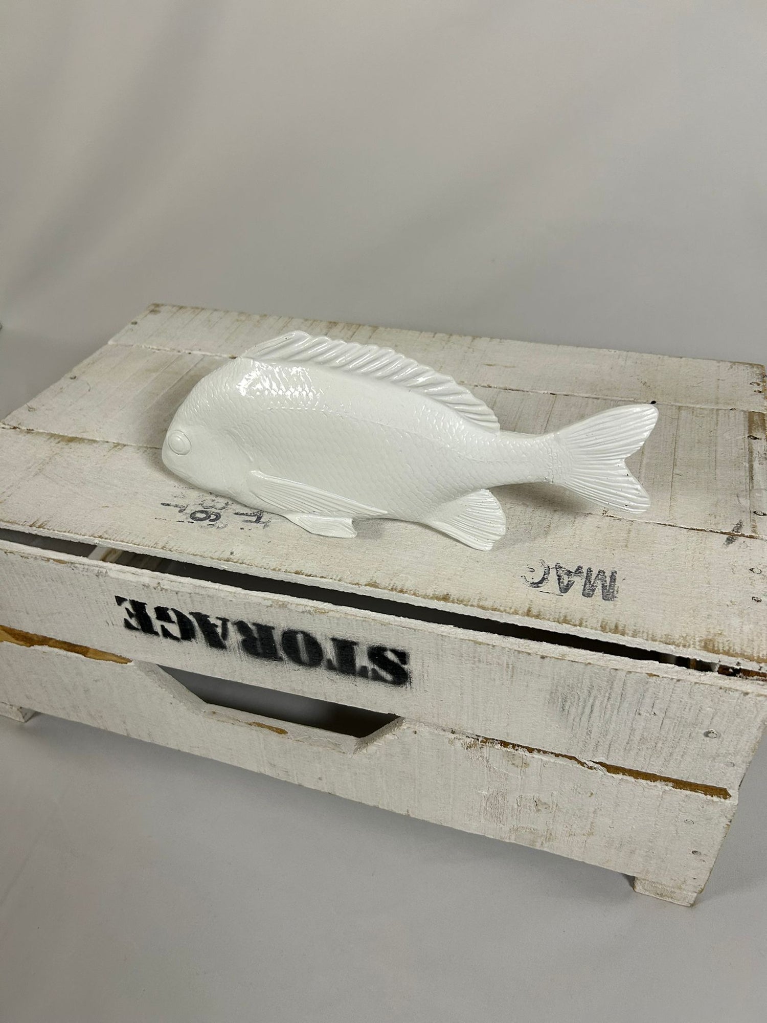 Dekorativer Fisch in klarer, weißer Optik mit liebevollen Details. Ideal für eine maritime Wohnatmosphäre und als Geschenk für alle, die Meer, Strand und nordisches Design lieben. Für den Innenbereich geeignet.