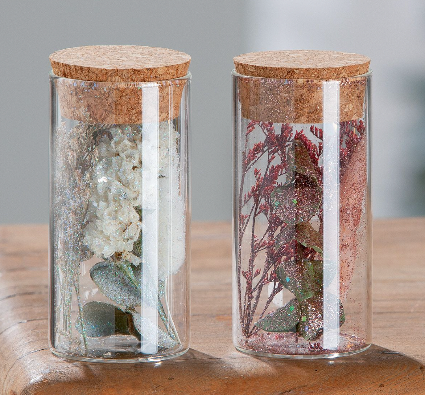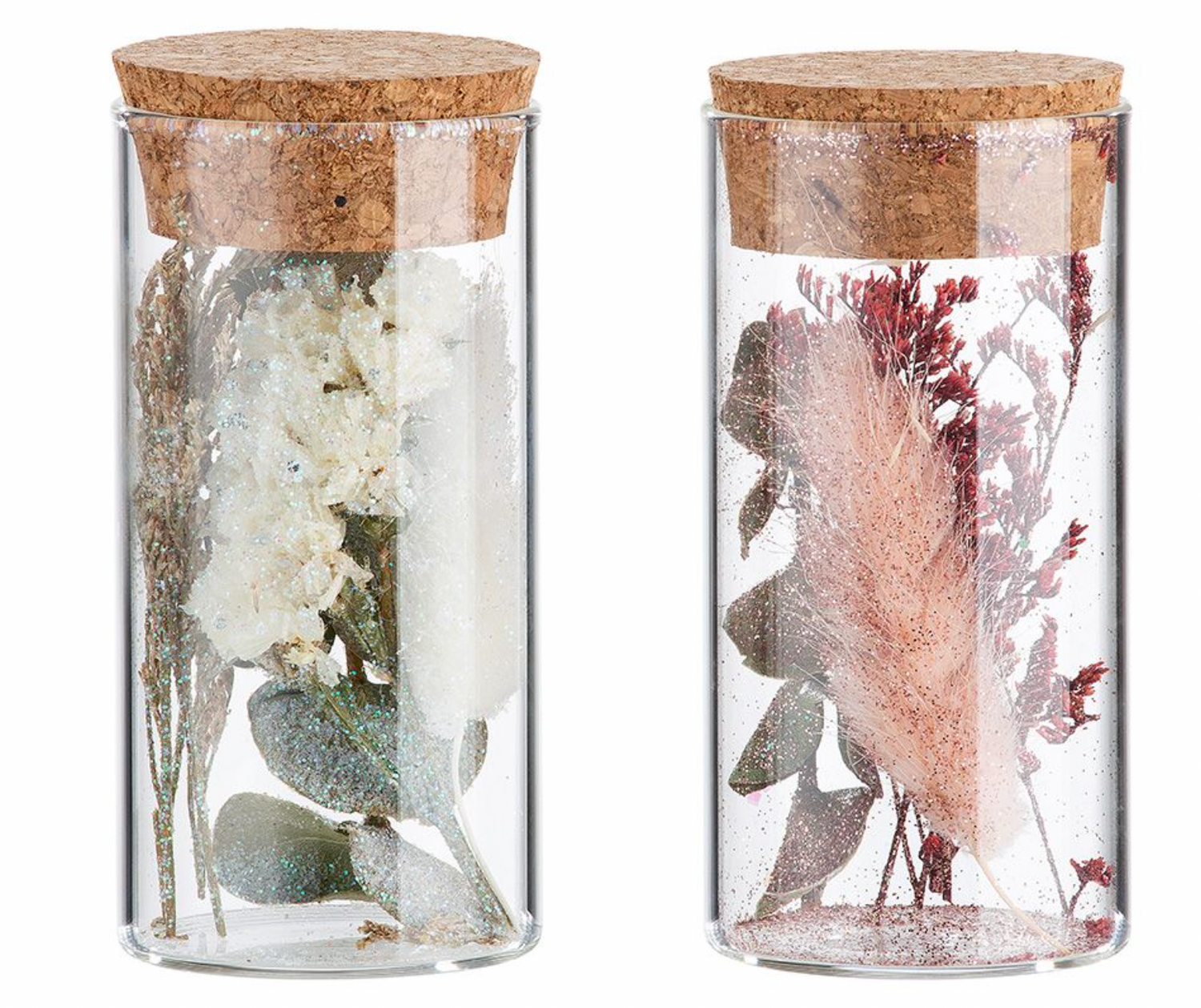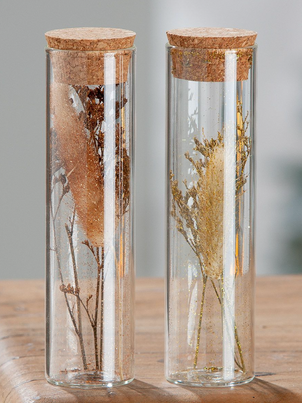 Trockenblüten Duo - Tischdeko - Klein 5x5x10 / Glas und Kork ist auf Lager und wird versandt, sobald es wieder verfügbar ist
